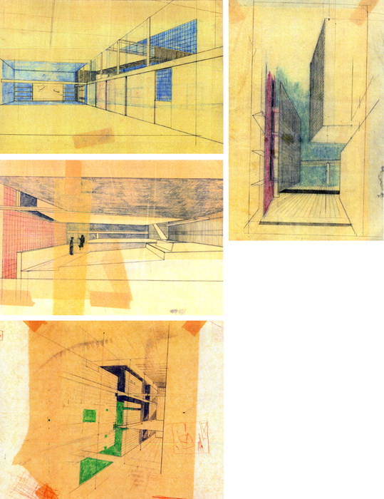 Early perspective studies made by hand.